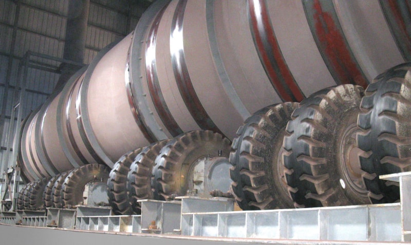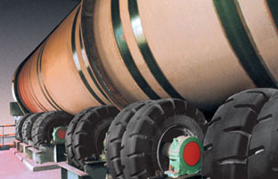 16.00-25规格海绵实芯轮胎配套在日照钢铁有限公司3.4米x14米混料机上